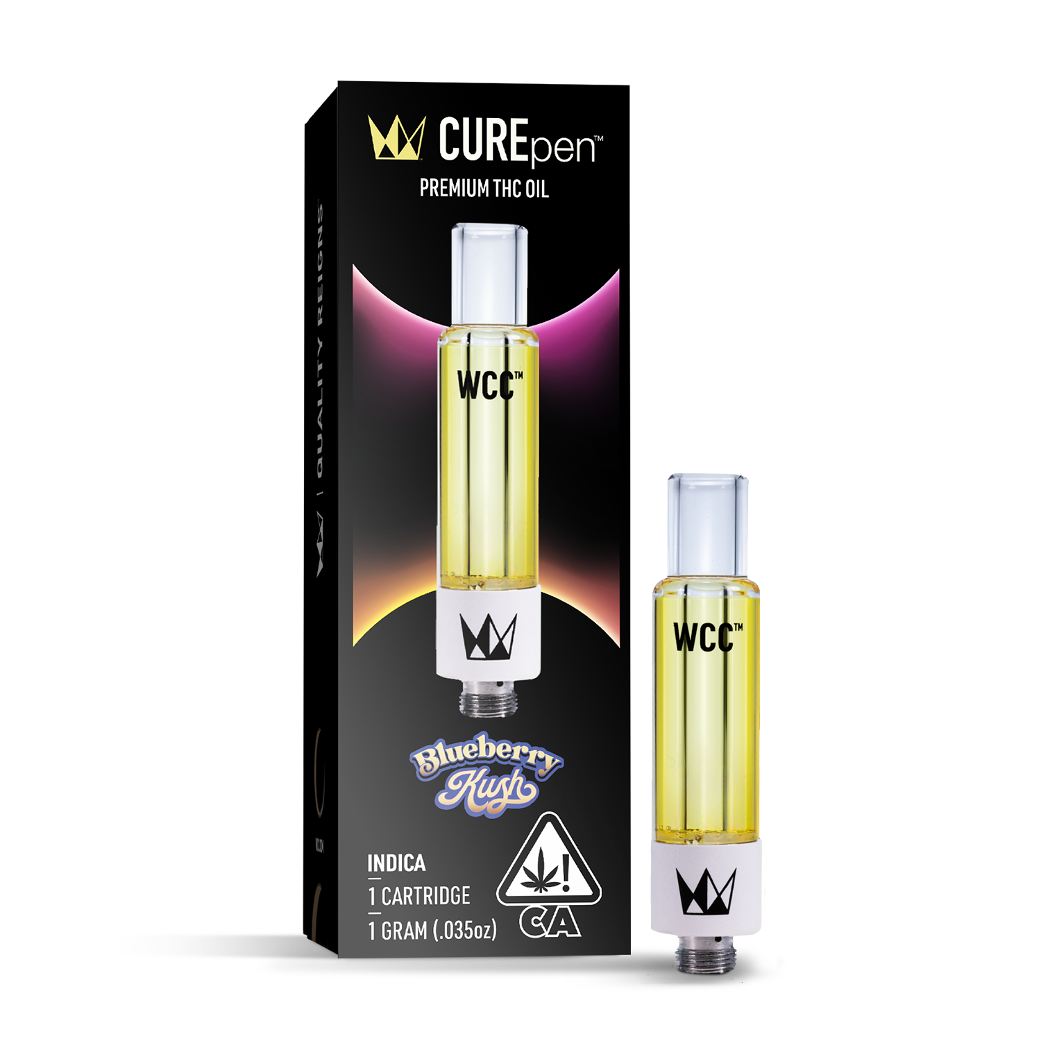 WCC's 1-gram Blueberry Kush CurePen Cartridge is the perfect choice for those looking to enhance their sense of chill. A full gram cart made from strain spedific extracts, the Indica dominant oil from the tank produces a sweet and gassy vape. Stress less and enjoy more, the oil in this 510 cart pairs nicely with a glass of wine and beautiful sunset.